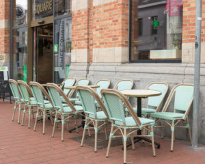 Le Times Square a choisi la chaise Hortensia teinte Vert Pastel, apportant luminosité et douceur à son espace extérieur. Un pied de table Modena 3 noir supporte un plateau Stratifié Moulé cerclé de laiton, faisant écho à l’intérieur raffiné. Le tout est sublimé par le décor intemporel “Mermer”, pour une ambiance douce parfaitement équilibrée entre fraîcheur et sophistication.